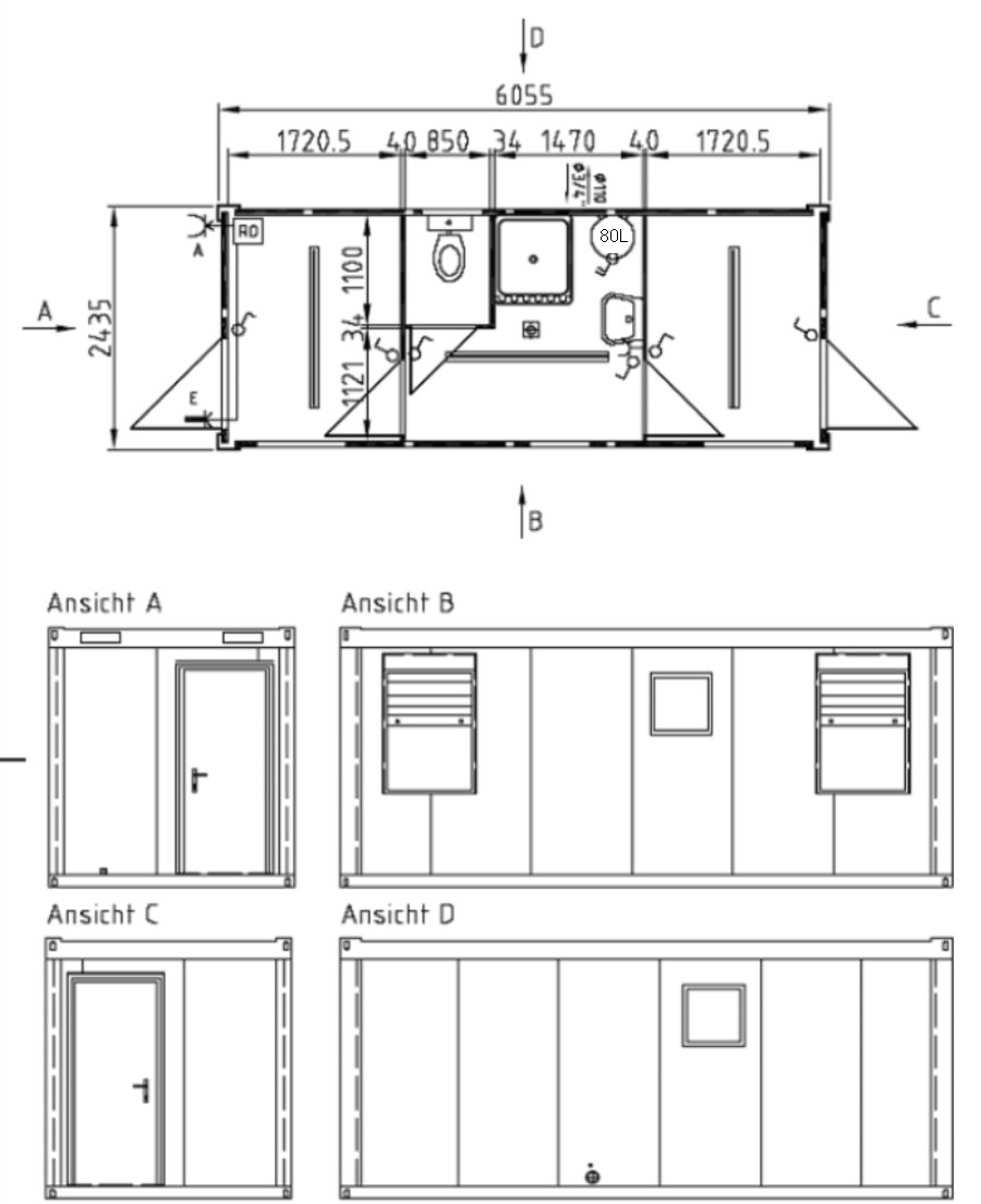Dieser Container ist für den Einsatz im extrem schmutzigen oder kontaminierten Bereich konzipiert. Das Prinzip lautet: "Schwarz" - rein, "Weiß" raus.